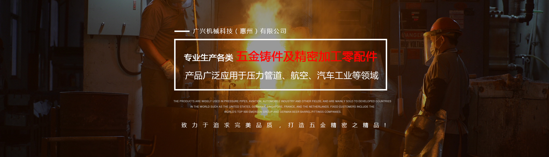 公司专业生产各(gè)类(lèi)五金(jīn)铸件及(jí)精密加工零配件,可(kě)熔炼材质为全系列(liè)不锈钢及碳钢,主要生产材质有304、316、316L、17-4、430、409等(děng),年生产各种不锈钢铸件1000余吨。产品广泛应(yīng)用(yòng)于压力管道(dào)、航空、汽车工业等领(lǐng)域,主要销往美国、德国、新加坡、法国、荷兰等世界发(fā)达国家,固定客户(hù)有(yǒu)世界500强艾默生集团及德国啤酒桶配件公司。