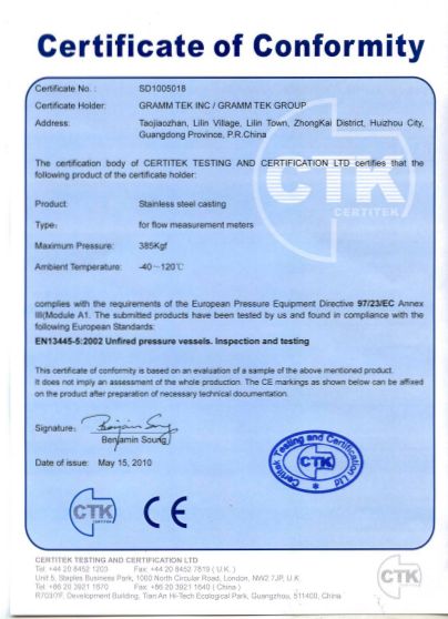 CE認證,本公司生產產品應用領域廣泛,航空、石化、汽配、食品(pǐn)、建材(cái)等,產品由MOODY及CTK機構認證歐盟PED97/23EC標準,具備(bèi)準入市(shì)場條件。