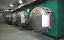圖為真空乾燥車間,與傳統空氣乾燥相比,真空乾燥可將(jiāng)殼(ké)模生產週期(qī)從七天以上降至1天以內。並且真空爐內能夠充分有效地(dì)乾燥型殼中的矽溶(róng)膠及水份,提(tí)高型殼強(qiáng)度和