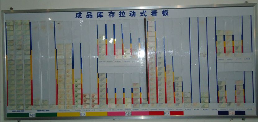 成品超級市(shì)場,包裝(zhuāng)完成(chéng)後成品入成品倉,上超級市場看板,客戶拉(lā)動資訊直接回饋到看板上,與毛胚超級市場對接,建立JIT生產(chǎn)模式,實現準時化生產作業。